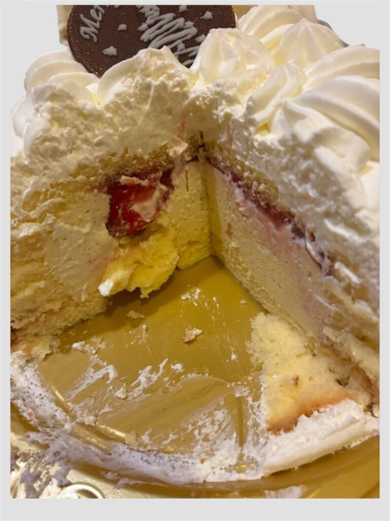 セブンイレブンで予約票を出し、受け取ってきたケーキの箱を開けると……。